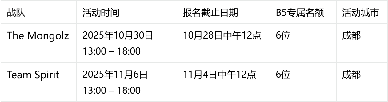 4.每场活动报名截止日前将陆续发放B5专属名额
